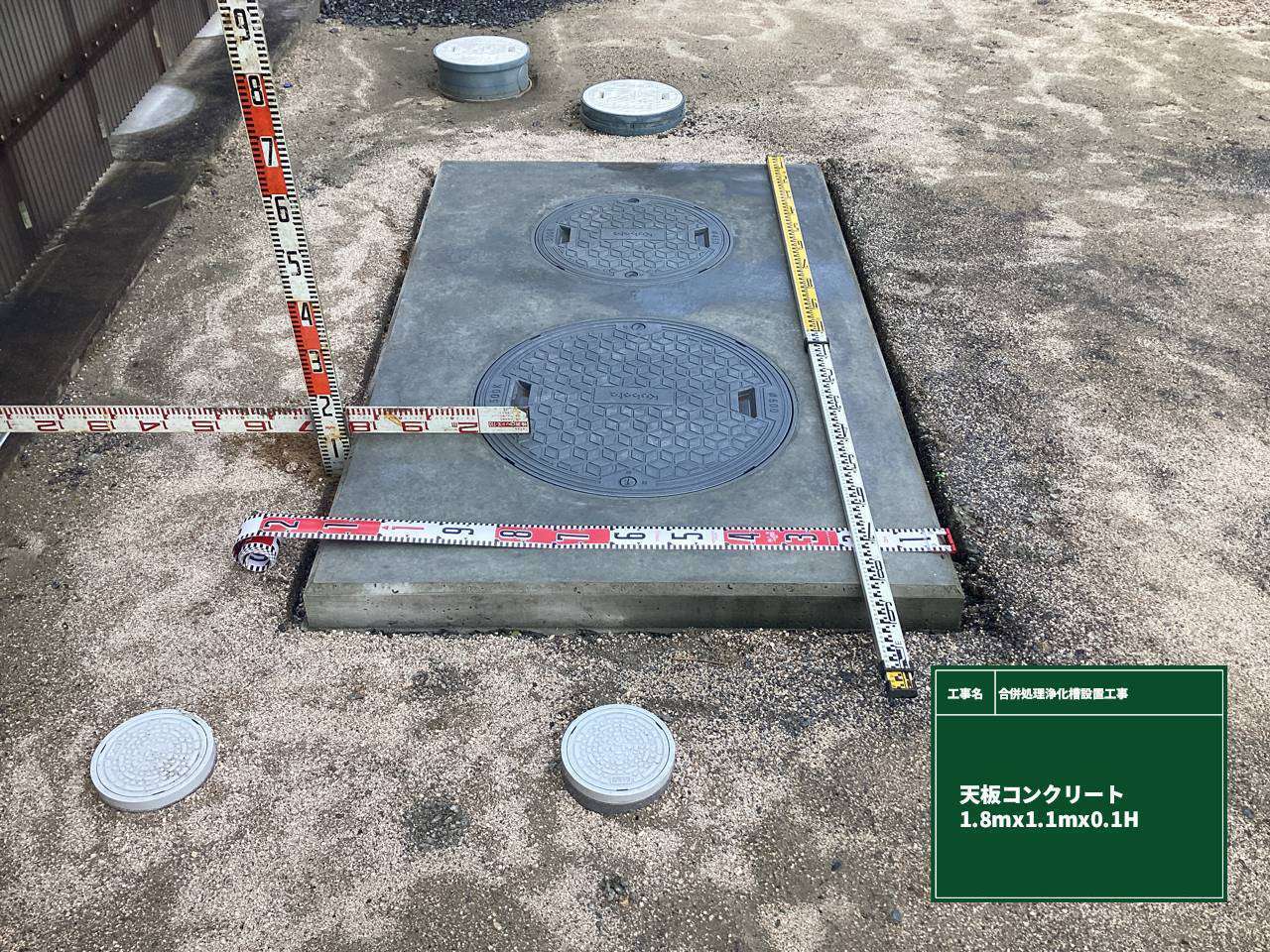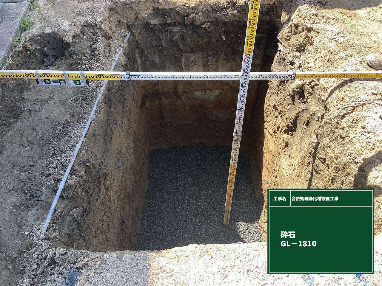 まず掘削作業により浄化槽設置用のスペースを確保し、地盤状況を確認したうえで合併処理浄化槽を慎重に据え付けました。その後、周囲にコンクリートを敷設し、安定性と耐久性を高めています。併せて、マンホールの設置と既存排水管との接続も実施し、機能性とメンテナンス性を両立した施工を行いました。
