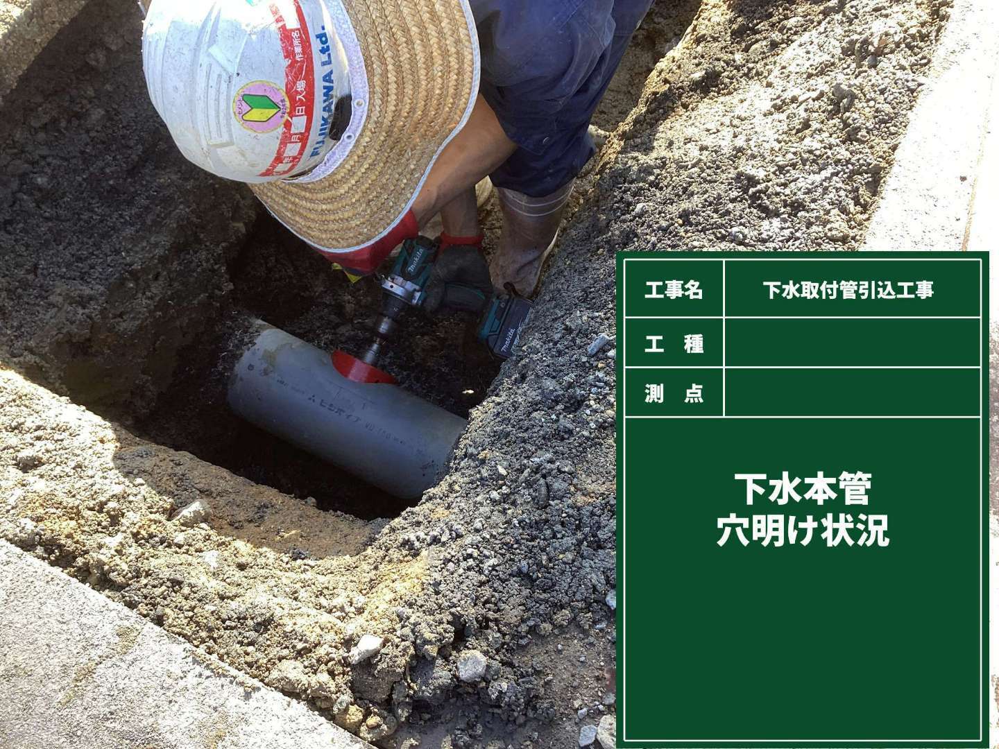 山口県内の現場にて、下水道本管からの取付管引込工事を行いました。