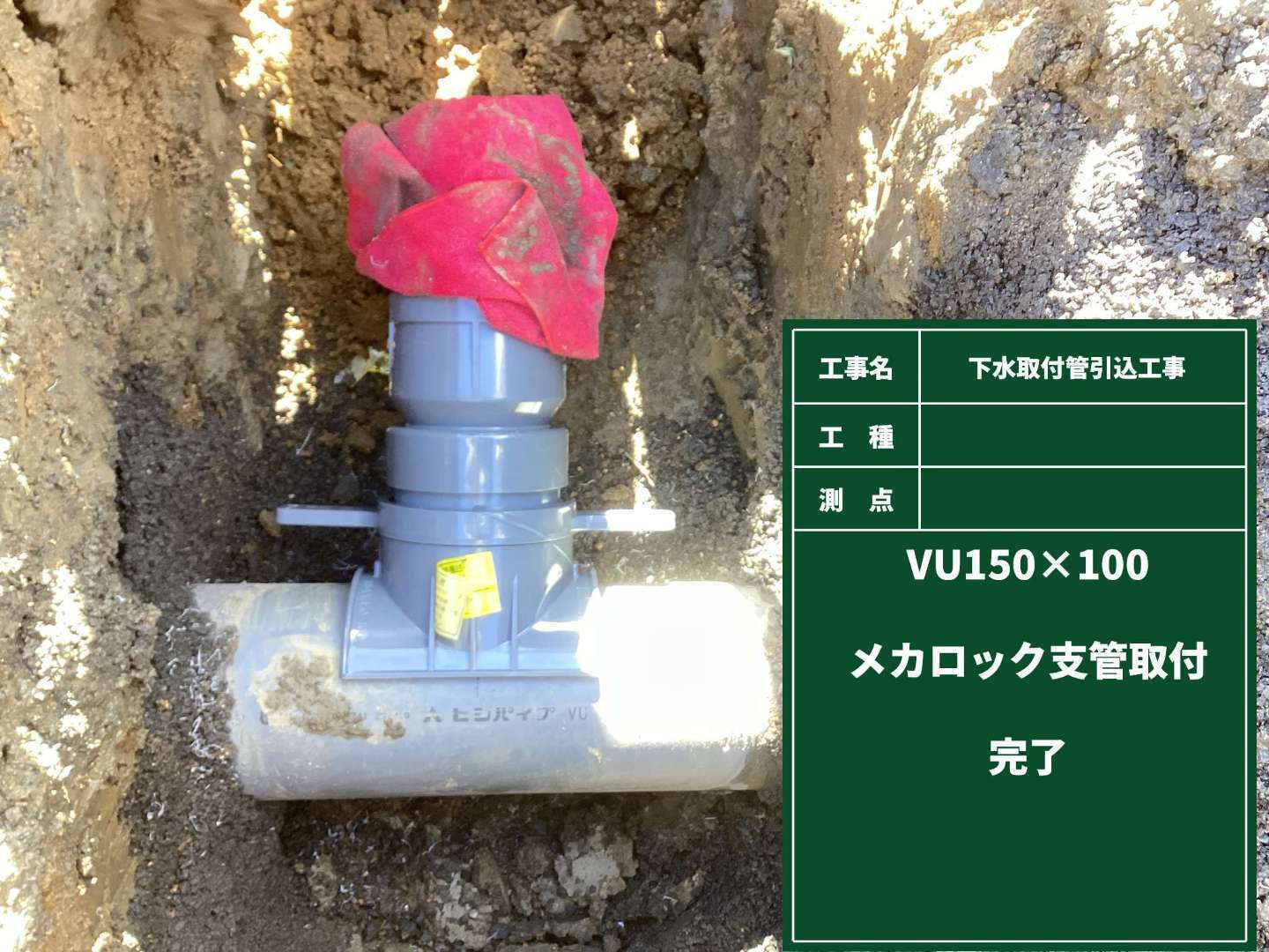 施工は、まず舗装切断および剥ぎ取りから着手し、適切な深さと勾配を確保しながら掘削を実施。その後、下水本管に専用機器で穴あけを行い、確実な接続を実現するため、メカロック支管を用いてしっかりと取り付けました。
